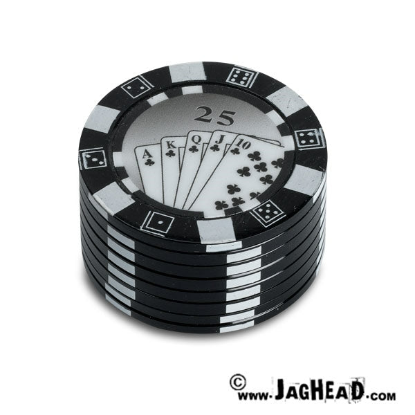 The poker chip grinder adds a fun twist to the game of poker, because besides cards, you can now also grind your weed. These grinders are available in three colors: green, red, and black.