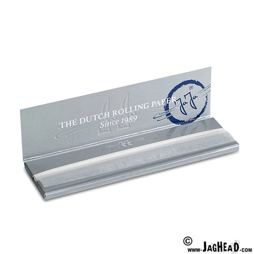 JaJa rolling papers are a top brand from Breda, and they've had their own line of rolling papers since 1989. JaJa Silver Kingsize is their premium rolling paper! JaJa Silver Kingsize papers are 108mm long and 53mm wide. The paper thickness of JaJa Silver Kingsize is 13g/m², and there are 32 papers in a pack of JaJa Silver papers. A box contains 50 packs of JaJa papers . JaJa Silver Slimsize papers now come in new packaging with the same trusted top quality!