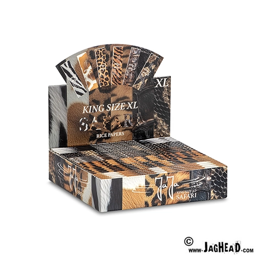De JaJa XL Safari is gemaakt voor de mensen die van een extra lange joint houden. Een vloeitje is namelijk 12,4 CM lang. Dit is 1,6 cm langer dan de gemiddelde joint. Een doos JaJa Safari XL bevat 24 pakjes en heeft 32 vloeitjes per pakje.