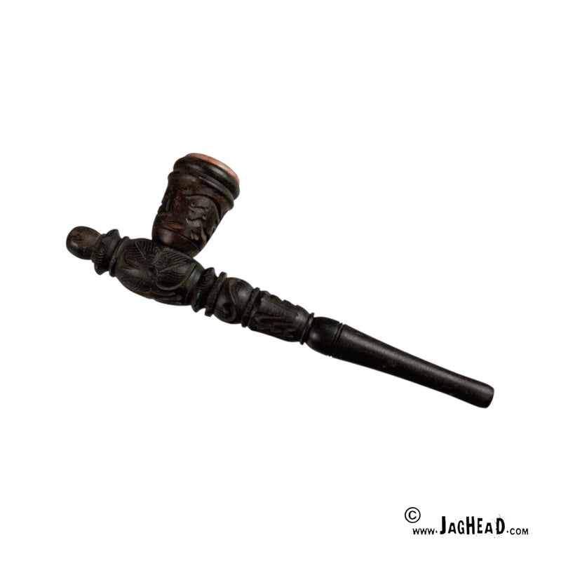 De gegraveerde houten pijp van 22 cm is een stijlvolle en traditionele rookpijp met een uniek handgesneden design. Dankzij het natuurlijke hout en de decoratieve gravering heeft deze pijp een authentieke en karaktervolle uitstraling.