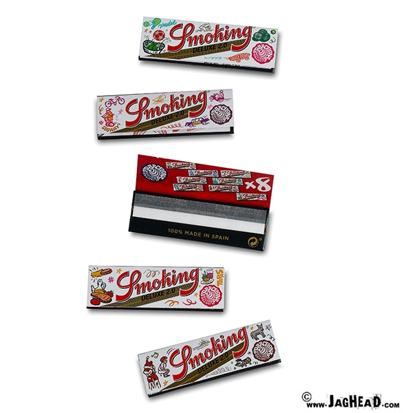 Smoking Black 1.25 vaak ook Smoking Black DeLuxe genoemd is hoge kwaliteit vloei die gemaakt wordt in Spanje. Deze vloei brandt sloom en gelijkmatig. Smoking vloei wordt geproduceerd van 100% natuurlijk plantmateriaal en de plakrand wordt volledig gemaakt van gom. Smoking vloei bevat geen kleurstoffen of andere vormen van toevoegingen. Smoking heeft een FSC-keurmerk en hun eigen Smoking watermerk. Een pakje Smoking Black (DeLuxe) 1.25 vloei bevat 50 vloeitjes in 1.25 superslim formaat (1 1/4e) met een papier dikte van 13 g/m2. Smoking Silver 1.25 heeft een lengte van 78 mm en een breedte van 44mm. Geschikt voor smalle tot medium dikte joints.