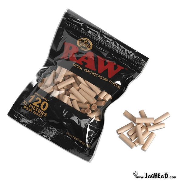 Zakje met 120 ongebleekte XL Filters van 6 mm doorsnede en 22 mm lang. Lees meer